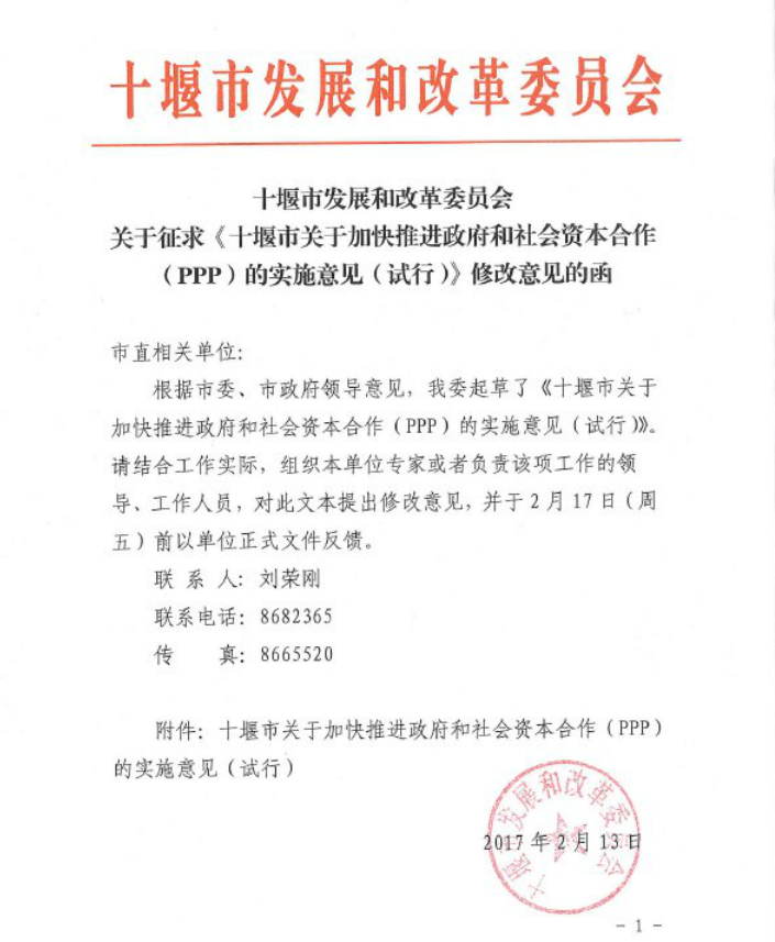 關于征求《十堰市關于加快推進政府和社會資本合作(PPP)的實施意見(試行)》修改意見的函